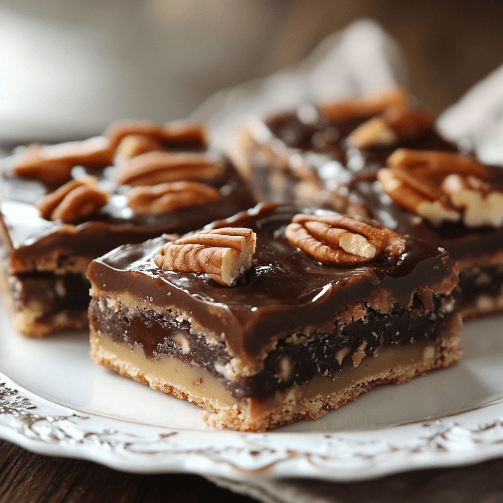 Pecan Turtle Bars are a variation of the classic Turtle candies, which traditionally consist of chocolate, caramel, and pecans. These bars incorporate the same flavor profile but are baked into a rich, layered dessert. The recipe typically begins with a buttery shortbread or graham cracker crust, followed by a sweet caramel filling that is topped with toasted pecans and drizzled with chocolate.