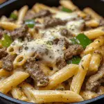 Hey there, food lovers! Are you craving a comforting, flavorful meal that’s surprisingly quick to whip up? Then get ready to dive headfirst into this creamy Philly cheesesteak pasta – a dish that perfectly blends the classic cheesesteak experience with the satisfying hug of pasta. Imagine this: tender pasta coated in a luscious, cheesy cream sauce, bursting with savory steak (or ground beef!), sweet bell peppers, and pungent onions. Each bite is an explosion of textures and tastes – the slight chew of the pasta, the melt-in-your-mouth cream cheese, the satisfying bite of the steak, and the subtle sweetness of the peppers. It’s pure comfort food bliss.