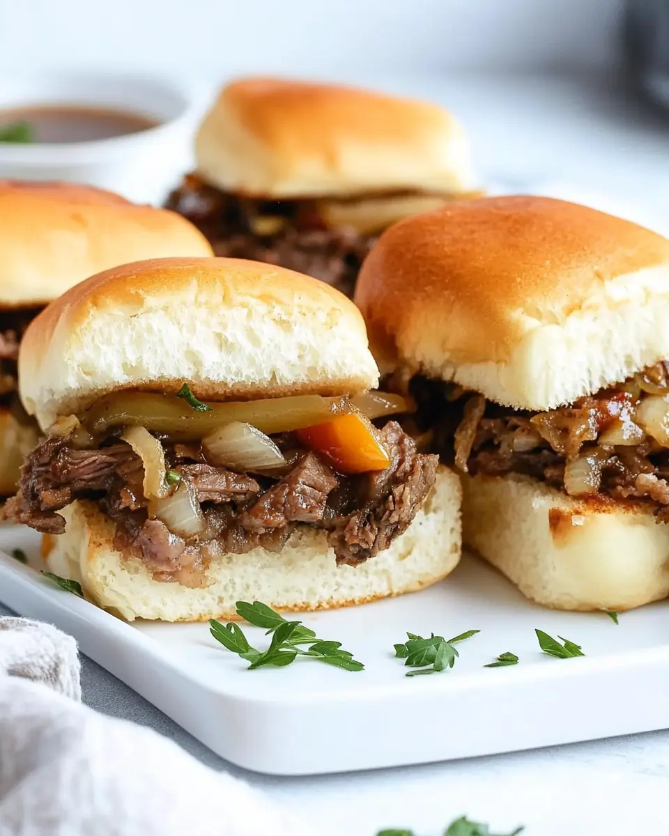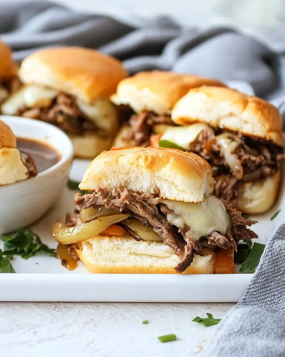 These sliders strike a perfect balance between the rich, savory flavor of the beef, the creaminess of the provolone cheese, and the freshness of the sautéed onions and bell peppers. Each bite offers a delightful combination of textures—from the soft slider buns to the gooey melted cheese—creating a satisfying experience that keeps you coming back for more.
