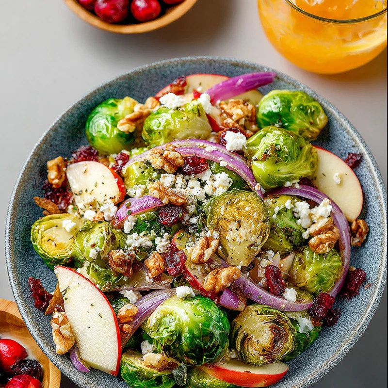 - Assemble your masterpiece: Once the Brussels sprouts and onions are out of the oven and slightly cooled (just enough to handle!), transfer them to a large bowl. Add your diced red apple, chopped walnuts, crumbled feta, and dried cranberries.