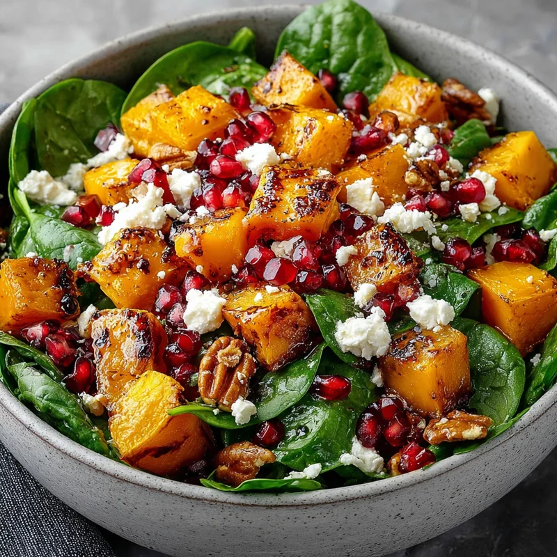 It’s generally not recommended to store this salad fully assembled, as the spinach will wilt and the nuts will lose their crunch. However, you can store the components separately. Keep the roasted butternut squash, pomegranate seeds, feta, and toasted nuts in airtight containers in the refrigerator for up to 2-3 days. The dressing can also be stored in a sealed container in the fridge for up to a week. When you’re ready to enjoy again, assemble a fresh portion of greens and add the prepped components and dressing.