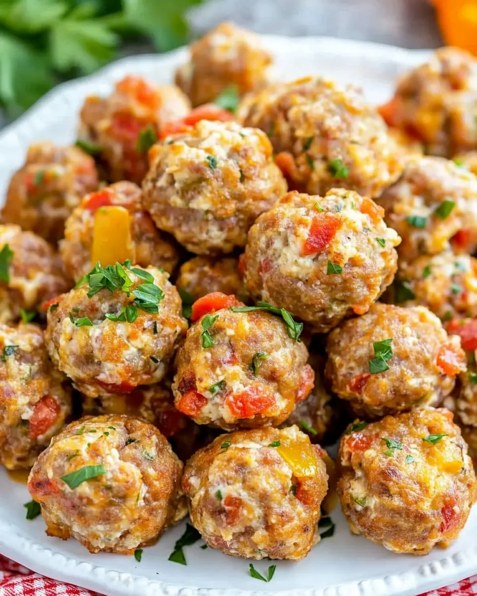 Whether you’re hosting a party or attending a potluck, these sausage balls are sure to impress. Their savory flavor and bite-sized nature make them perfect for sharing, ensuring that they will be a hit with friends and family alike. You’ll love how quickly they disappear from the platter!