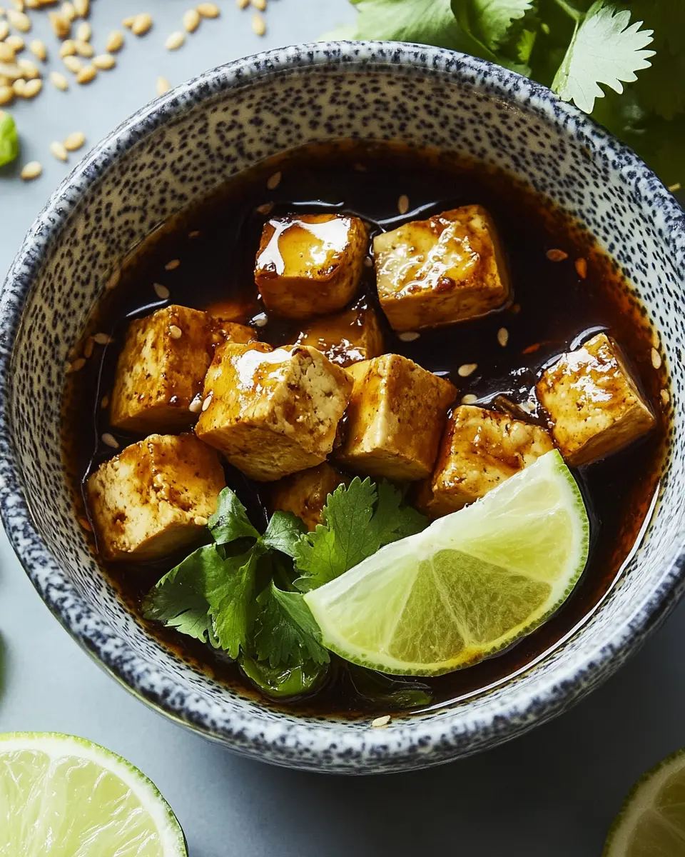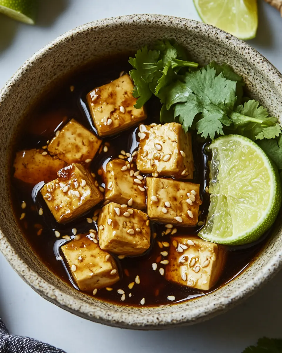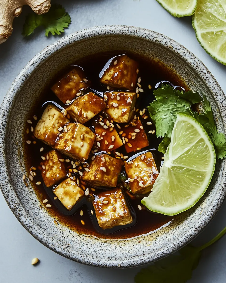 This flavorful marinade features a blend of sesame oil, ginger, and lime to enhance tofu and other dishes.