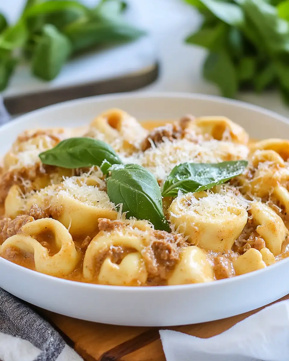 The inclusion of cheese tortellini adds a creamy texture and delightful taste, making each serving feel indulgent. This pasta complements the richness of the sauce, elevating the overall comfort level of the dish.