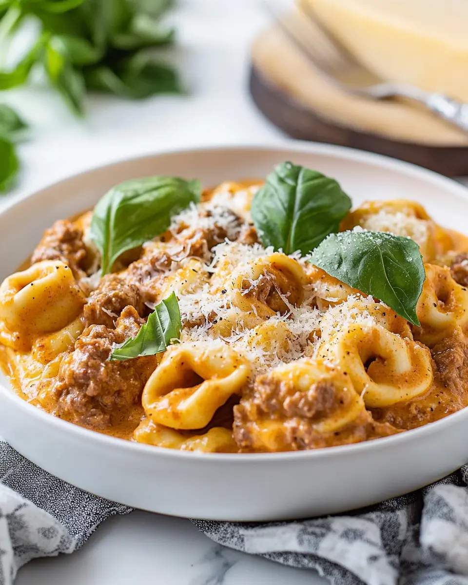 Heavy cream contributes to the overall creaminess and luxurious mouthfeel of the dish, making it feel indulgent without being overly heavy. It helps create a velvety sauce that clings deliciously to the tortellini.