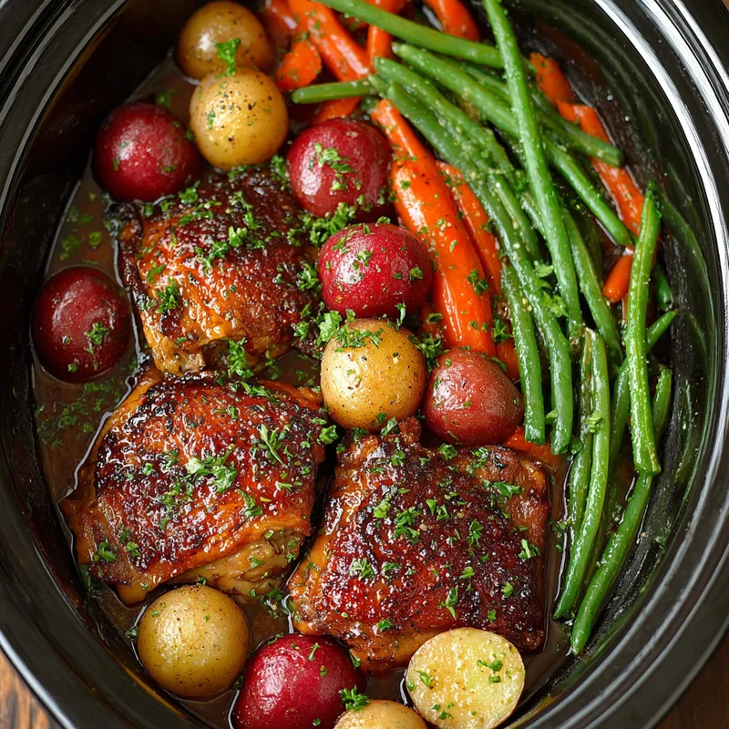 - 8 bone-in, skin-on chicken thighs These are my secret weapon for juicy, flavorful chicken. The skin gets nice and tender in the slow cooker.