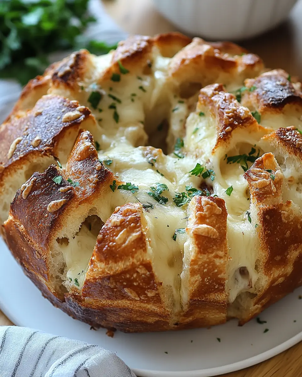 This pull-apart bread is not only tasty but also designed for sharing. Its fun, interactive nature makes it a great choice for gatherings, parties, or family dinners. Everyone will love tearing off their own pieces, making it a hit at any occasion. Plus, serving this warm and cheesy delight will surely impress your guests, turning a regular meal into a memorable experience.