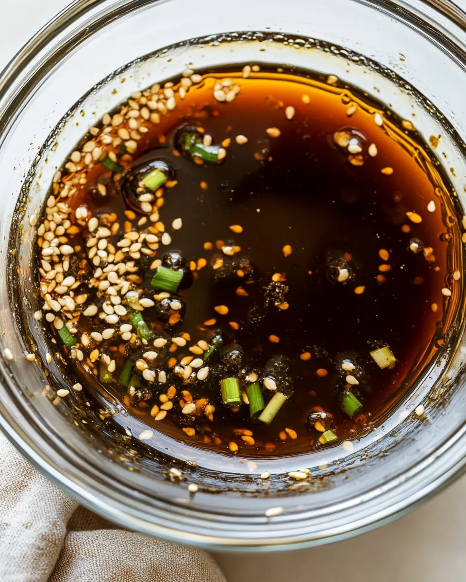 Rice vinegar contributes a mild acidity that balances the flavors perfectly. It cuts through the richness of the sesame oil and adds a refreshing tang.