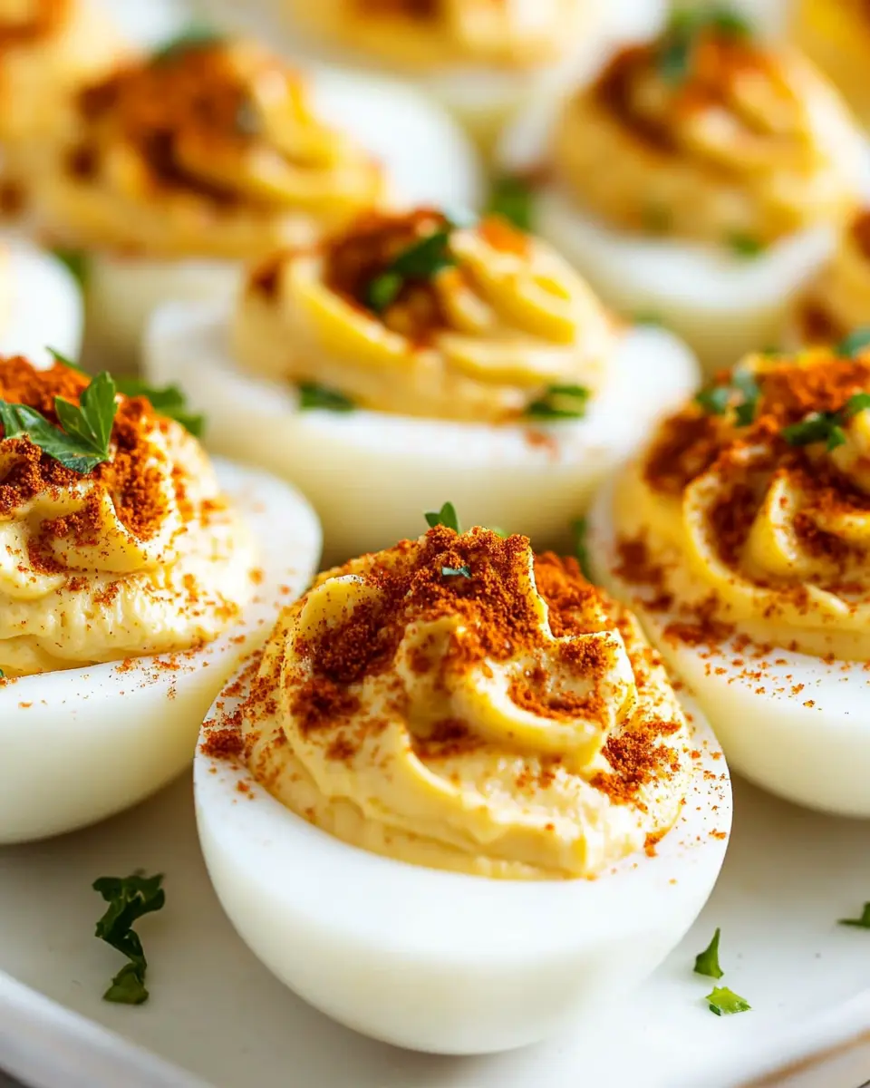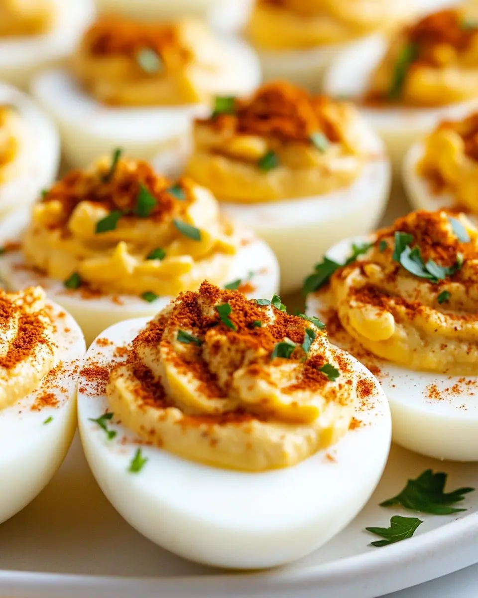 To save even more time, consider hard boiling the eggs a day ahead. You can also prepare the yolk mixture in advance and store it in the refrigerator. This way, when it’s time to assemble, all you need to do is fill the egg whites and garnish, making your cooking process even smoother!