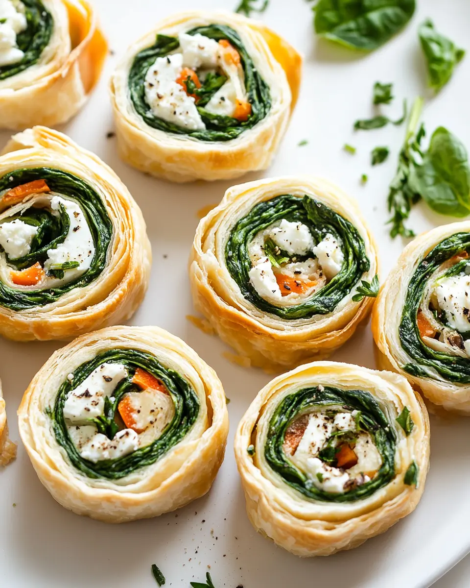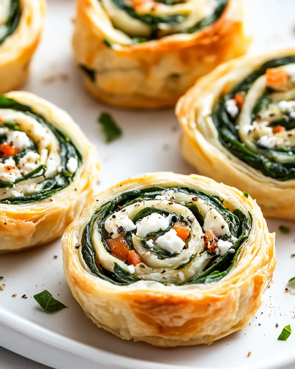Delicious and easy-to-make spinach and feta pinwheels perfect for appetizers or party snacks.