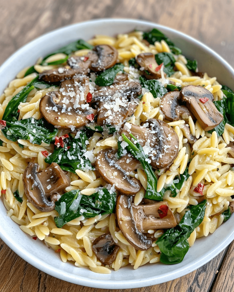 - Creamy Spinach Mushroom Orzo: For a richer dish, stir in some heavy cream or cream cheese when mixing in the Parmesan. This will make the orzo creamy and indulgent, perfect for a comforting meal.