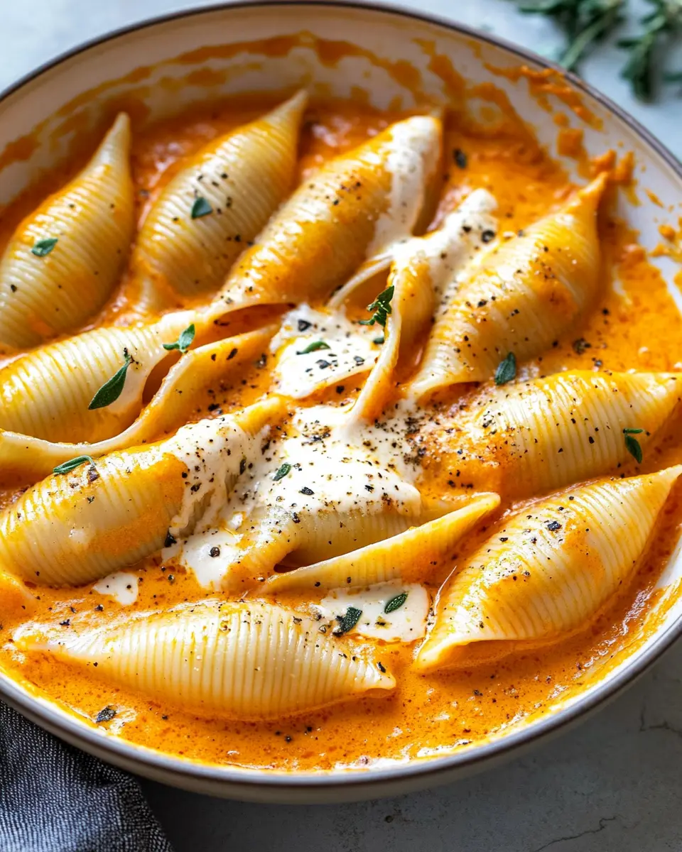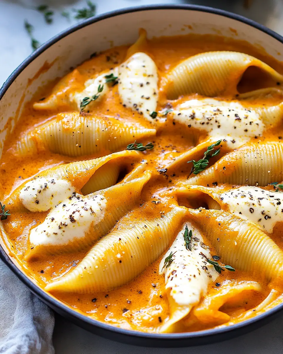 The Stuffed Shells With Pumpkin Cream Sauce offers a delightful fusion of creamy ricotta, sweet pumpkin, and aromatic spices. This unique combination creates a comforting dish that excites the palate, making it a favorite for both family dinners and gatherings.