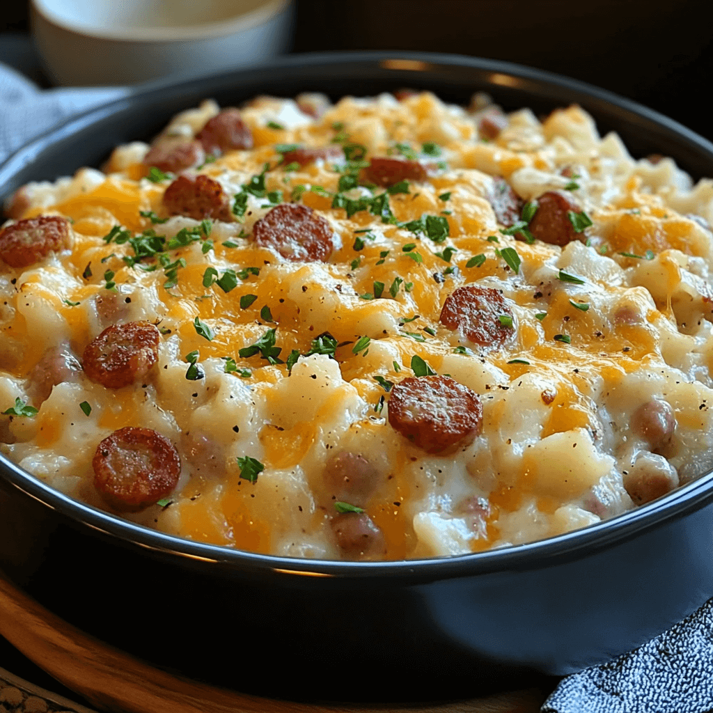 Super Easy Cheesy Sausage Hashbrown Slow Cooker Meal