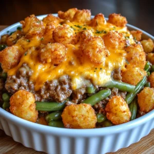 - Crunchy Topper: For extra texture, sprinkle some crispy fried onions (like the kind for green bean casserole) over the top of the Tater Tots before baking.
