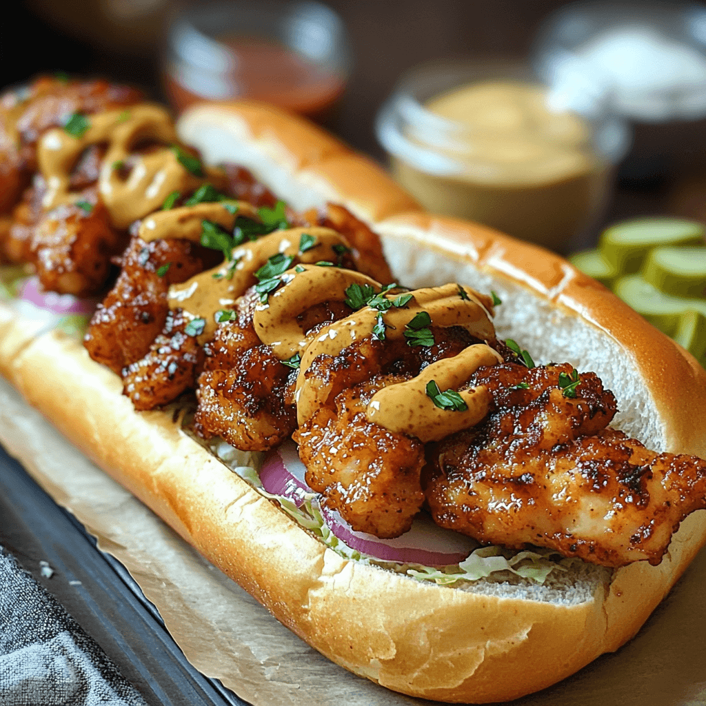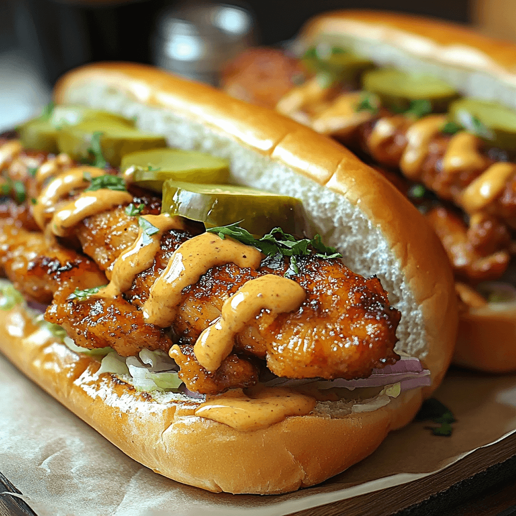 Imagine the juicy tenderness of perfectly cooked chicken, the tangy kick of a mustard-based BBQ sauce, the creamy richness of mayonnaise, a sharp bite of Dijon, and the sweet counterpoint of honey. All this nestled between a soft hoagie roll, alongside crisp pickles and thinly sliced red onion, topped with fresh lettuce… It’s a symphony of taste!