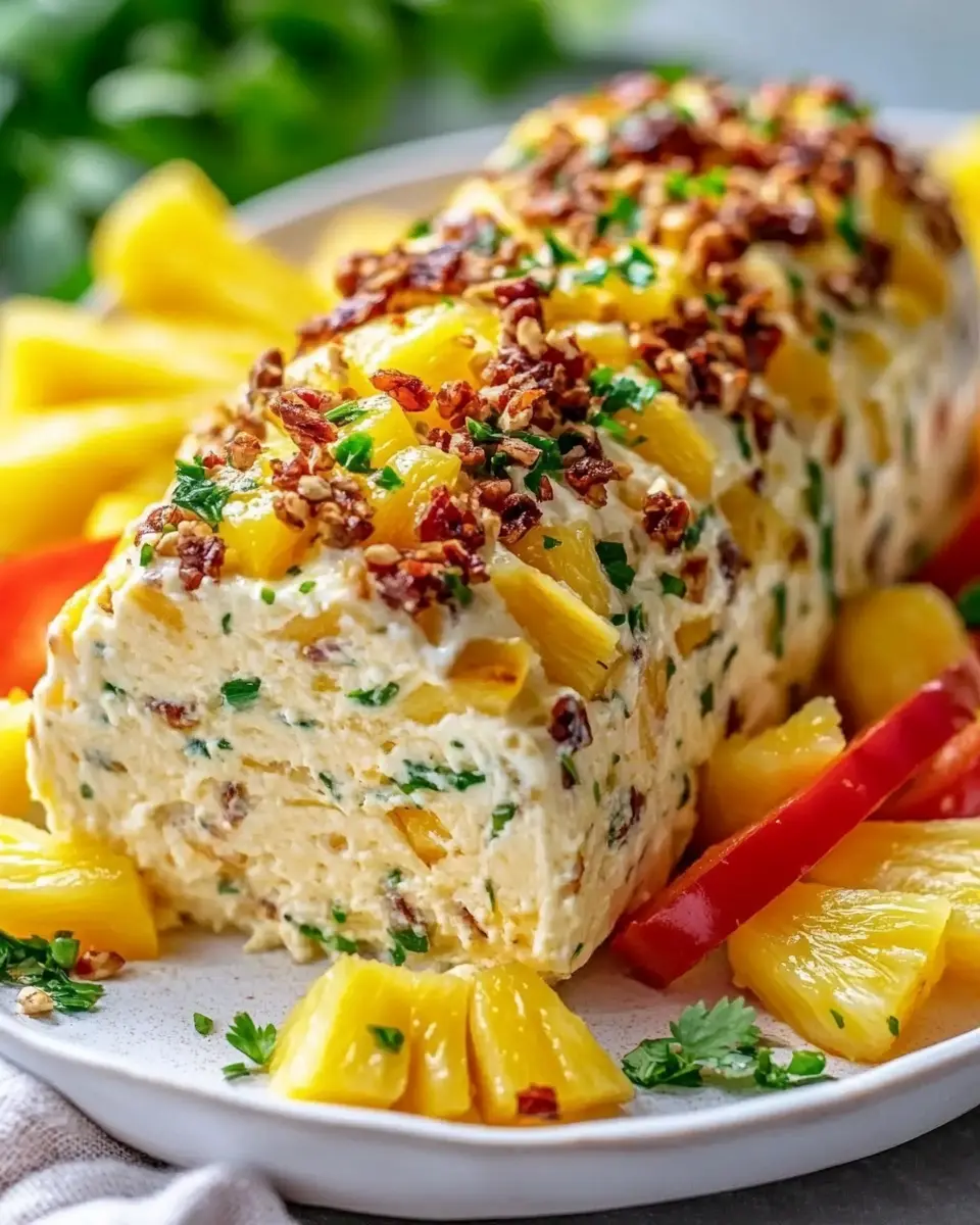 The Tropical Jalapeño Pineapple Cream Cheese Log is a delicious appetizer that combines cream cheese, crushed pineapple, jalapeños, and other flavorful ingredients. This sweet and spicy log is perfect for serving with crackers or fresh vegetables, making it an ideal choice for gatherings.