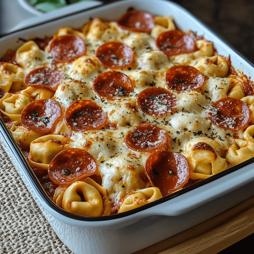 This cheesy pepperoni tortellini pizza casserole is the ultimate comfort food – easy to make, incredibly flavorful, and satisfyingly cheesy! The combination of tender tortellini, spicy pepperoni, and melted cheese creates a dish that’s both delicious and incredibly comforting. It’s perfect for a weeknight meal, a casual gathering, or a cozy night in. So, give this recipe a try and let us know what you think! Don’t forget to leave a comment below and rate the recipe. Happy cooking!