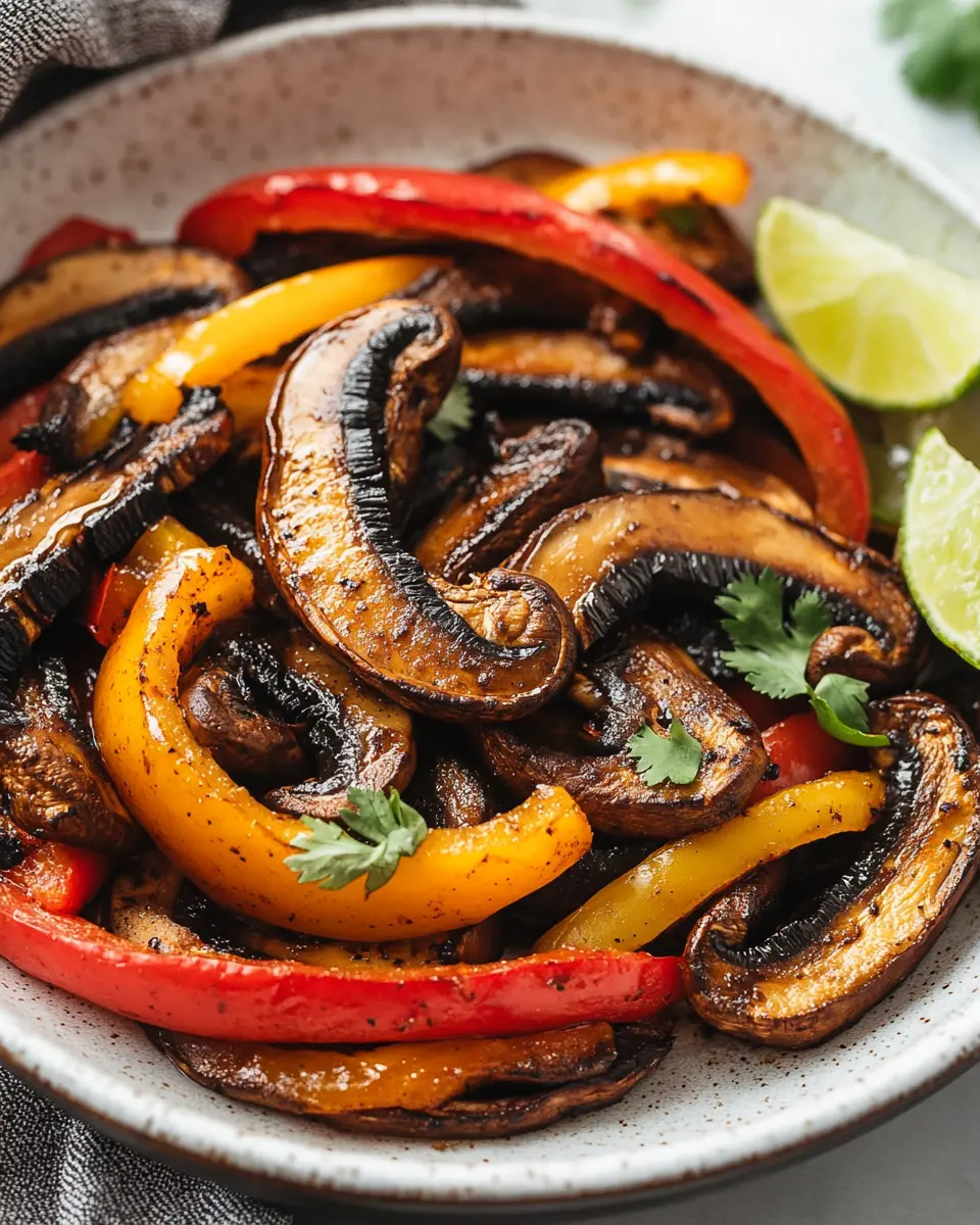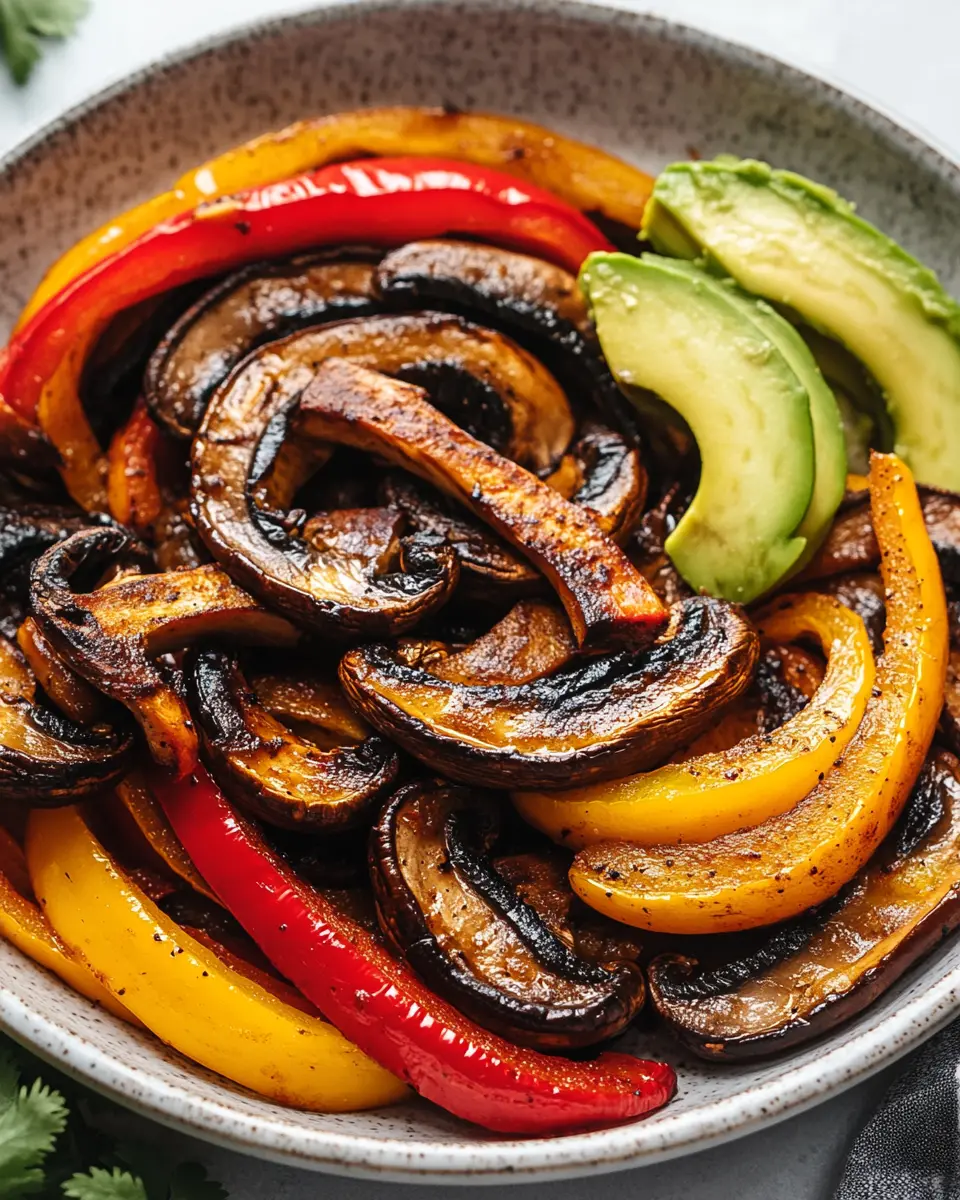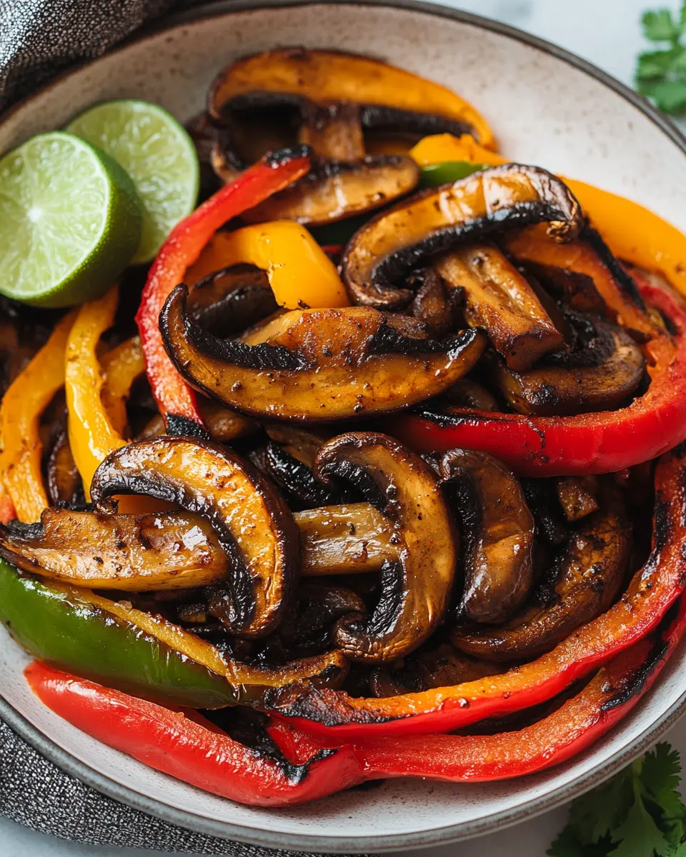 Vegan Portobello Mushroom Fajitas are not only delicious but also packed with health benefits. Portobello mushrooms are low in calories and rich in antioxidants, which can help boost your immune system. The colorful bell peppers provide a wealth of vitamins A and C, while the onions add beneficial compounds that support heart health. Olive oil, a healthy fat, enhances the absorption of these nutrients and promotes overall well-being.