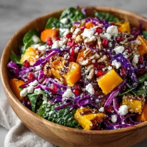 - Step 1: The Base. Grab a big ol’ bowl. Toss in your baby spinach or mixed greens, the vibrant shredded purple cabbage, those sweet roasted butternut squash cubes, the sliced roasted carrots, and if you’re using it, your fluffy cooked quinoa.