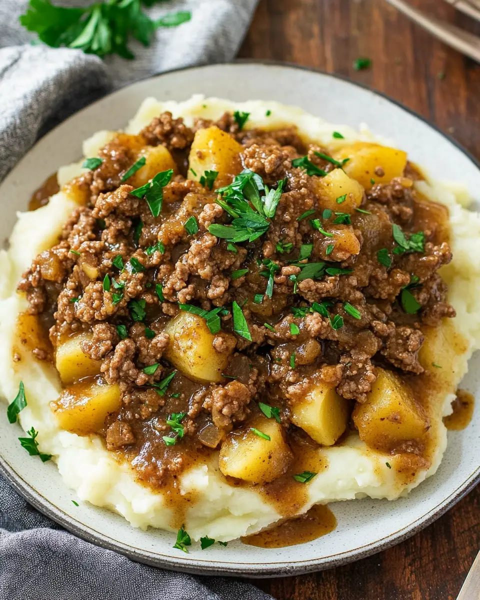 The main ingredients in this dish offer several health benefits. Ground beef is a great source of protein and essential vitamins like B12, supporting muscle health and energy levels. Potatoes provide complex carbohydrates and fiber, helping to stabilize blood sugar and keep you feeling full. Additionally, the inclusion of garlic and onions contributes antioxidants and anti-inflammatory properties, making this meal not only delicious but also nourishing.