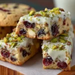 A delightful and easy-to-make shortbread cookie featuring creamy white chocolate, tart cranberries, and nutty pistachios, perfect for holidays or any occasion.