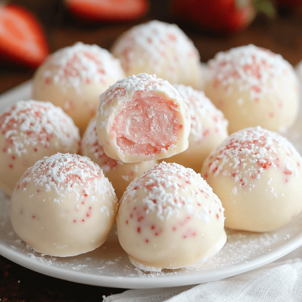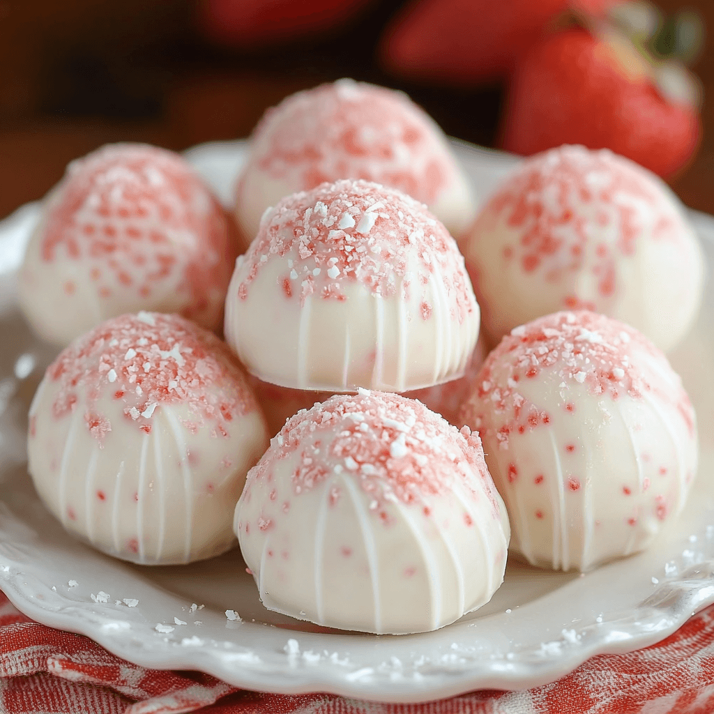 Use high-quality white chocolate for the best flavor and texture. Make sure your strawberries are completely dry before adding them to the chocolate mixture to avoid a watery consistency. Don’t overheat the chocolate, or it might seize up. Work quickly when rolling the truffles, as the mixture will soften as it warms up. If the mixture is too soft to roll, chill it for a bit longer. Chill the truffles completely before serving to maintain their shape and prevent them from melting. Store them properly to maintain freshness and avoid any texture changes.