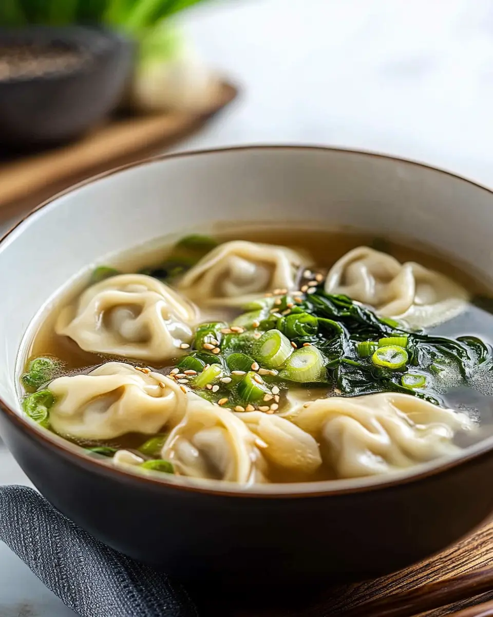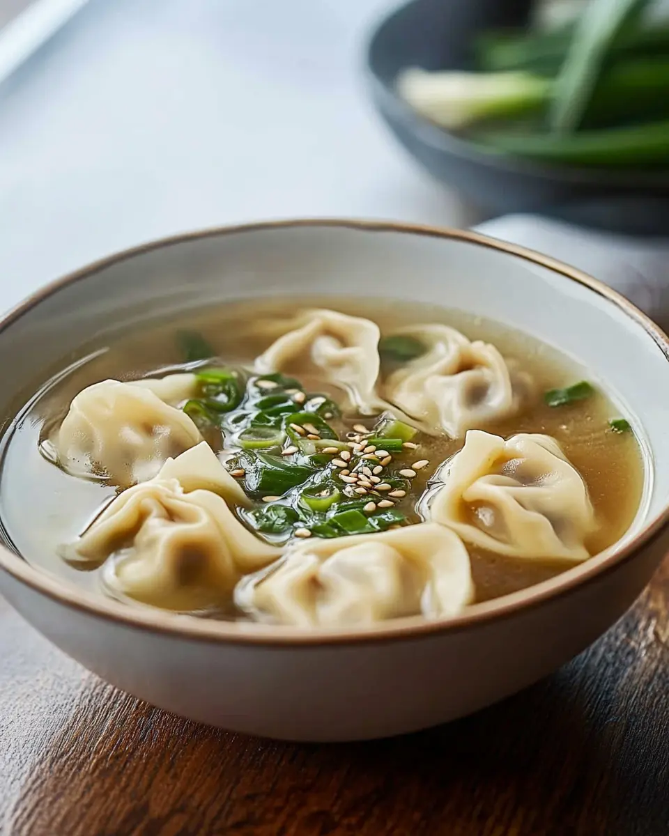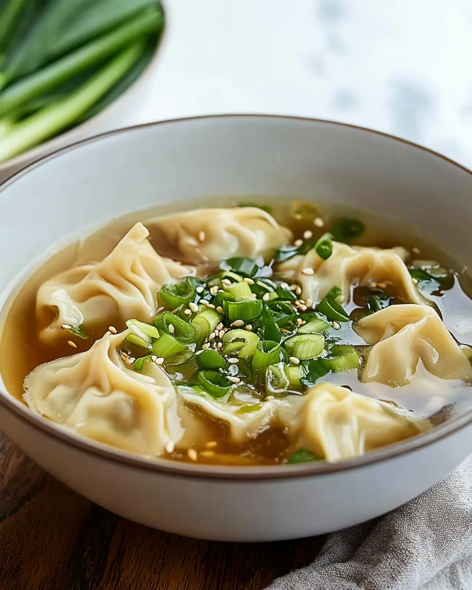 A comforting and flavorful Wonton Soup filled with tender dumplings and fresh vegetables.