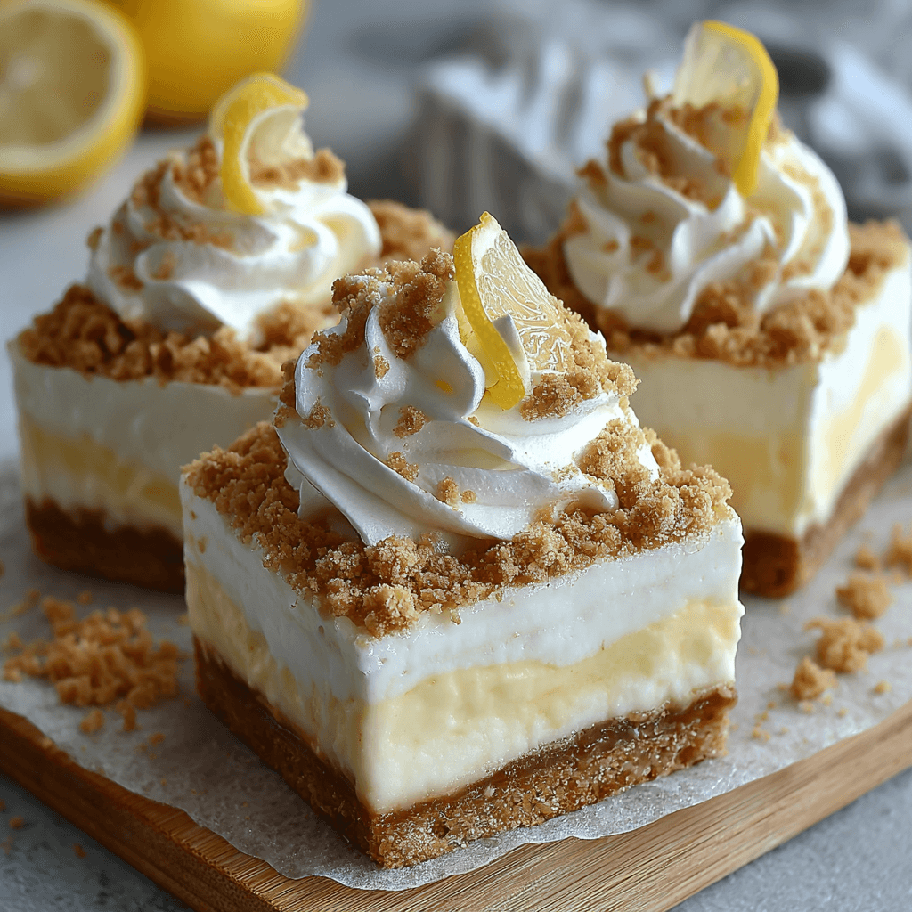 No oven needed: Just chill and serve for a fuss-free dessert. Fresh, zesty flavor: Lemon juice and zest make these squares bright and refreshing. Simple ingredients: Pantry staples combined with a few easy toppings. Perfect for entertaining: Bite-sized, beautiful, and ready to impress.